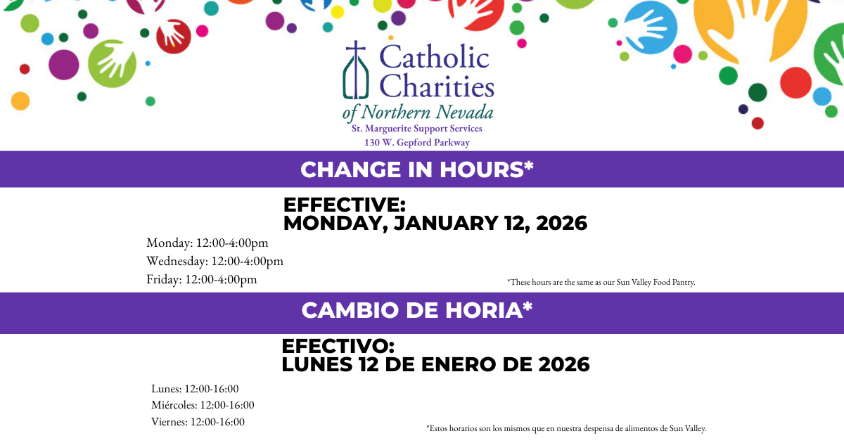 Change in hours at St. Marguerite Support Services in Sun Valley effective Monday, January 12, 2026.